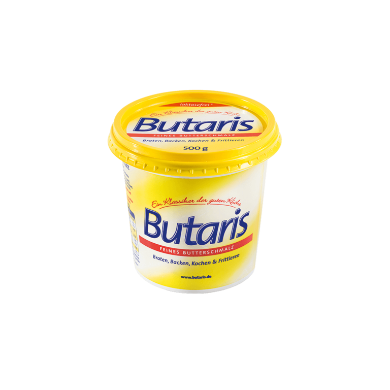 Butaris přepuštěné máslo je bezvodý čistý mléčný tuk 99,8 %, který se vyrábí z čerstvého másla oddělením vody, mléčných bílkovin a mléčného cukru.