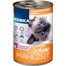 - EDEKA Feine Mahlzeit Stückchen mit Seelachs in Gelee 400g-kočičí konzerva s kuřecím a hovězím