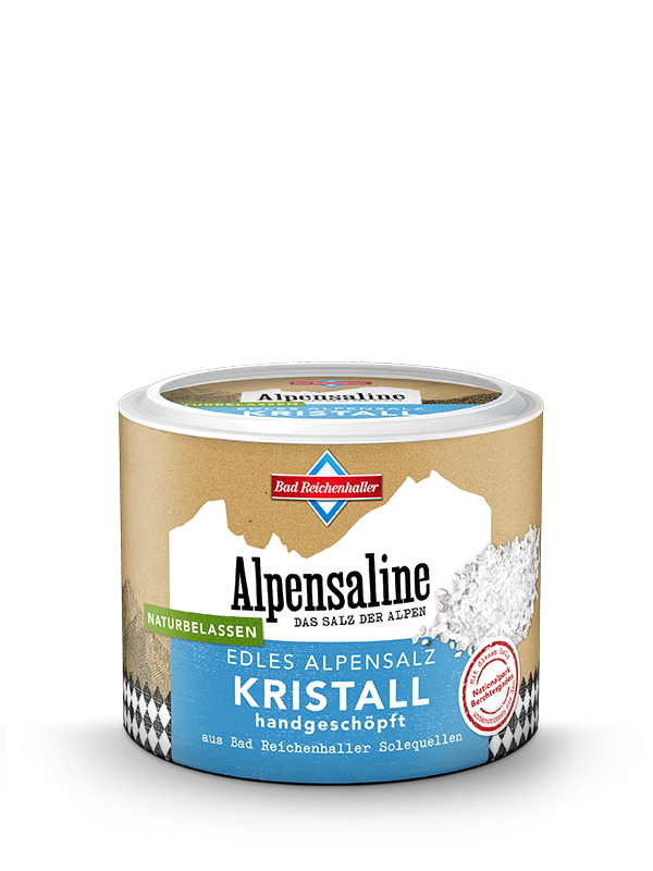 Touha po přírodě je na rtech každého, ale přeskočme jen toto přání: S naším vzácným alpským solným krystalem máte čistou přírodu přímo v ústech! Bez separačních prostředků a bez přísad. U tohoto vyrobeného produktu je spousta manuální práce a vášně: Náš kuchař připravuje jemné krystaly soli, které se tvoří, když se na vařící pánvi ohřívá čistý přírodní solanka. Přírodní alpská sůl sušená na vzduchu si skutečně získala laskavou přezdívku „bavorská Fleur de Sel“!