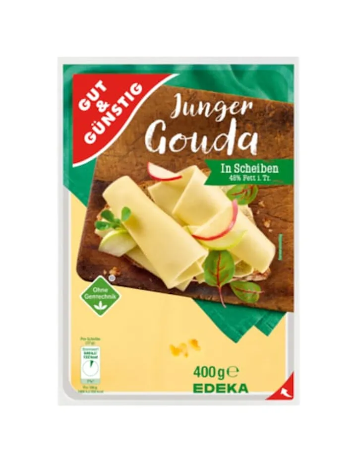 | Právní označení: | Mladá Gouda, krájená, 48 % tuku v sušině | ||||||||||||||||||||||||