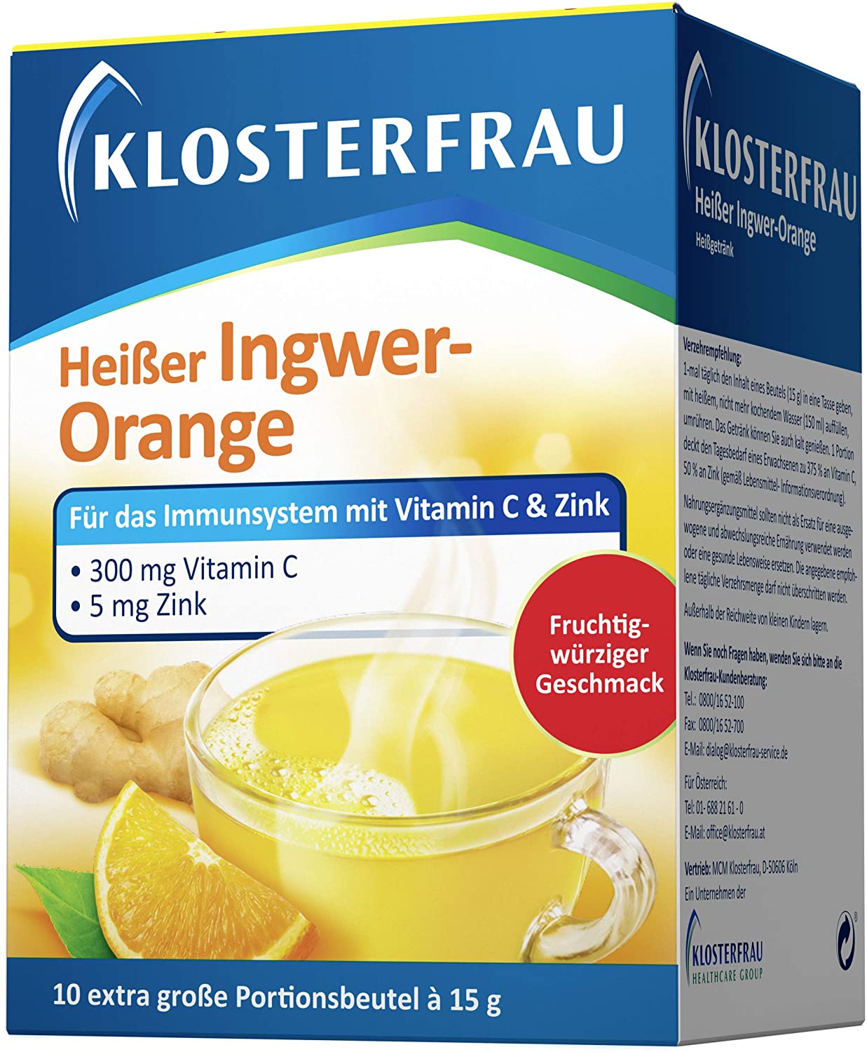 - Obsah balení: 10 sáčků po 15 g broncholindového horkého zázvorového pomeranče z Klosterfrau / jemný kořeněný horký nápoj s vitamínem C a zinkem pro posílení imunitního systému a aktivaci obranyschopnosti.