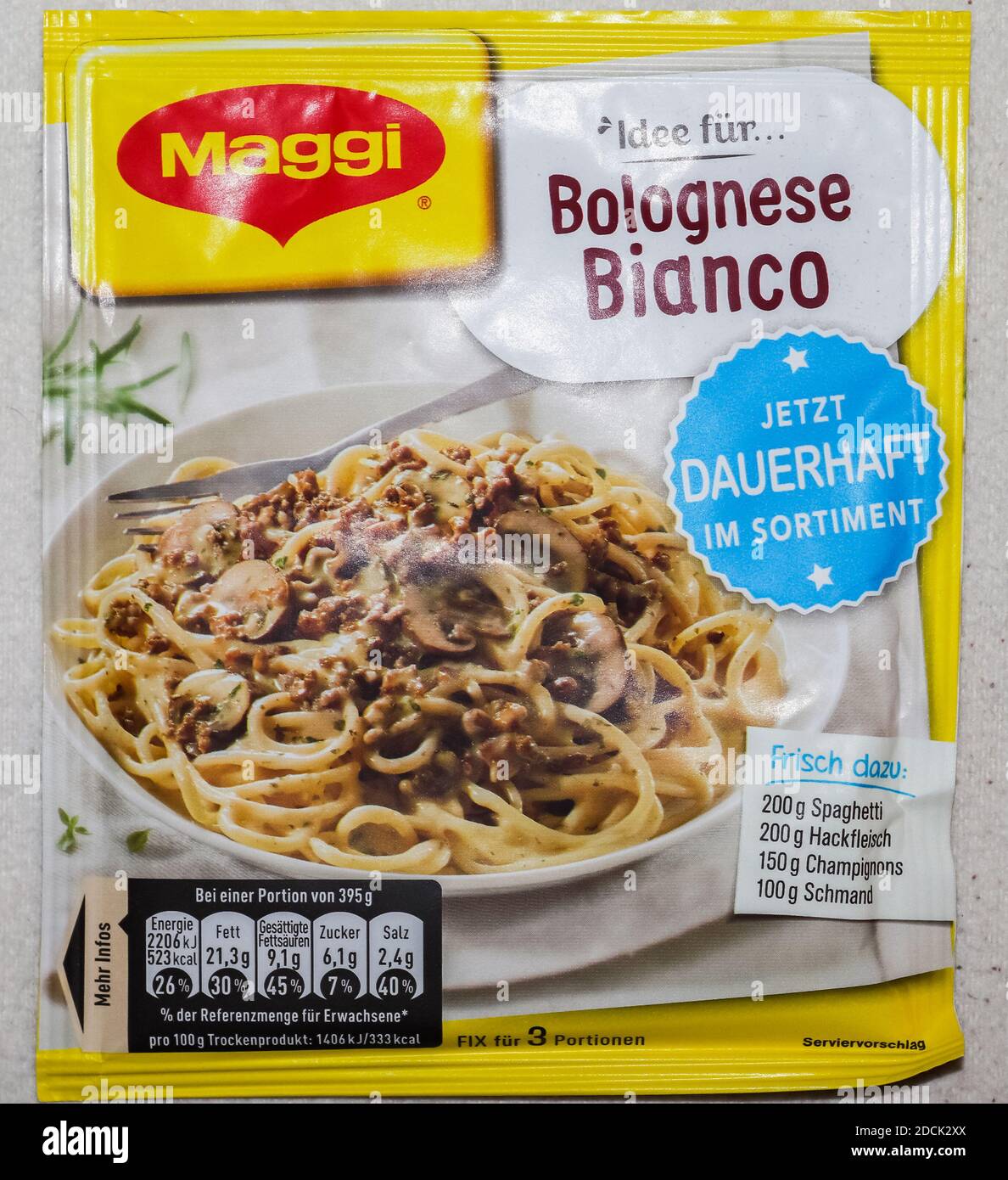Vyzkoušejte něco oblíbeného Němců z těstovin odlišný. Bolognese Bianco nabízí svěží verzi klasické Bolognese a potěší celou rodinu. S několika čerstvými ingrediencemi můžete během okamžiku vytvořit vydatný pokrm. Smetanová, pikantní omáčka s houbami a jemnými bylinkami zajišťuje autentickou chuť.