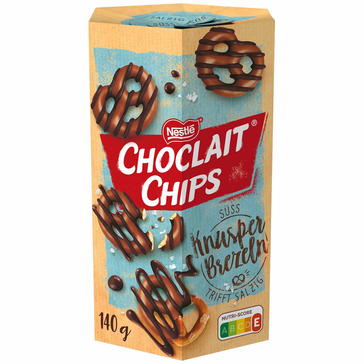 Ať to křupe! Lahodné křupavé preclíky Choclait Chips zpestří svačinu po práci. Čerstvě uzavřený sáček v nezaměnitelné šestihranné skládací krabičce obsahuje křupavé slané preclíky - pokryté mléčnou čokoládou rozpouštějící se v ústech a zušlechtěné ozdobnými proužky hořké čokolády. Vznikne tak kombinace chutí.