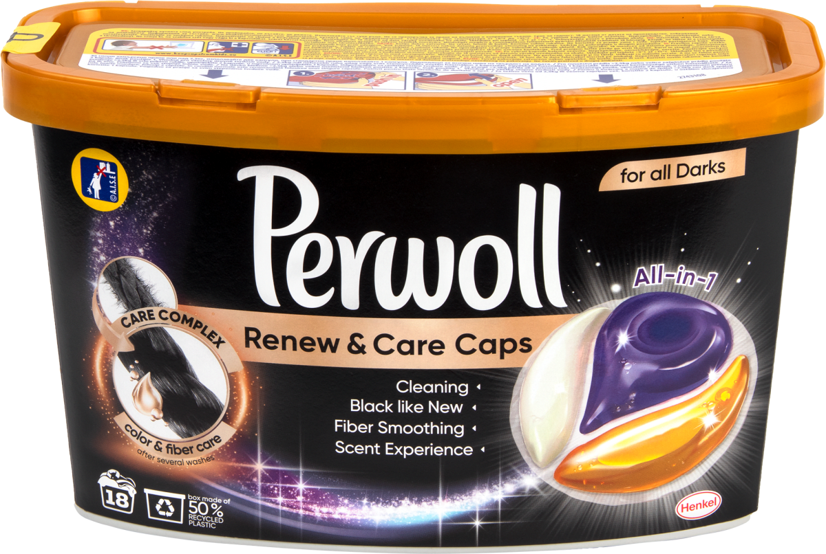 - Perwoll Renew & Care Caps Černá & Vlákno 18 ks