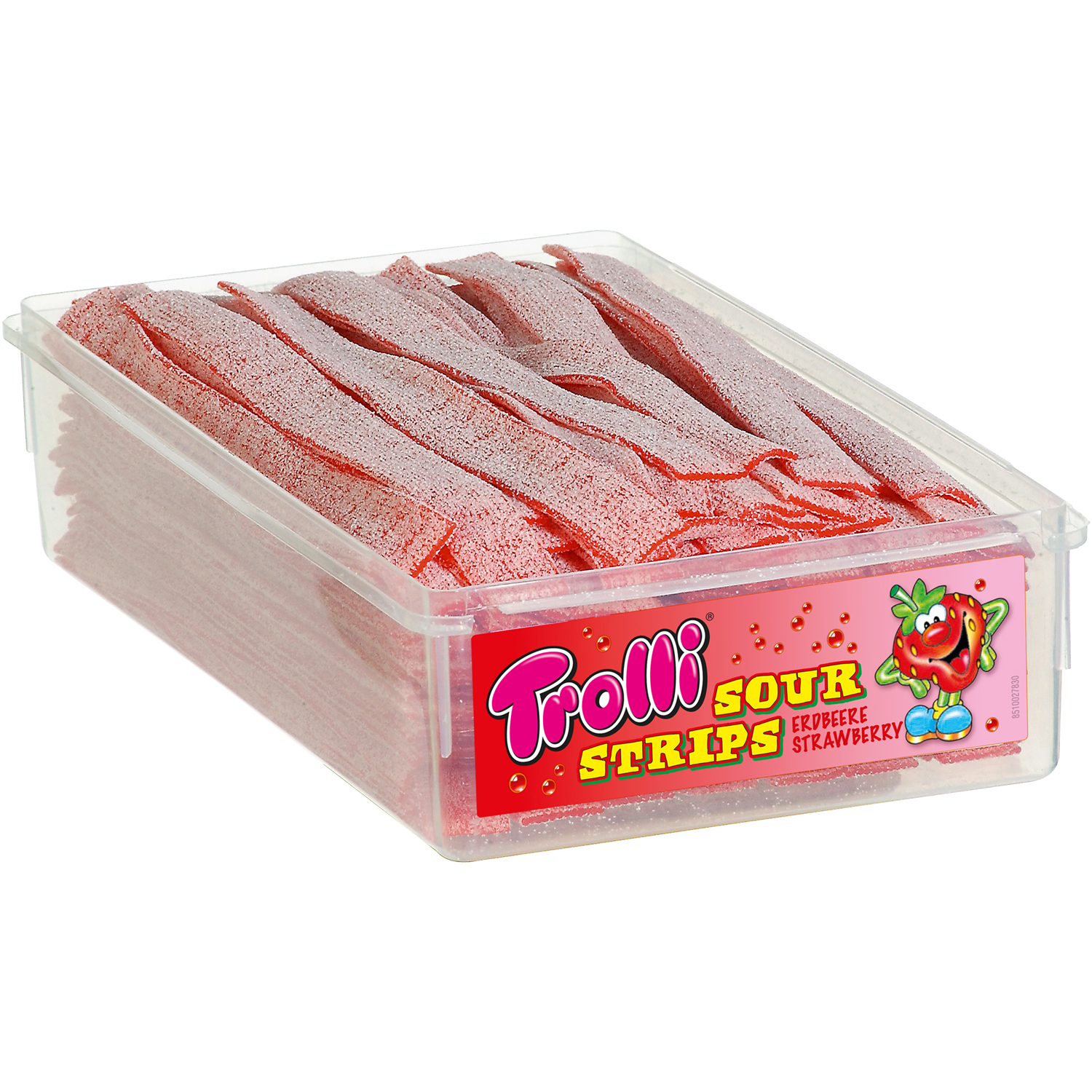 Lahodné ovocné gumové stuhy jsou dlouhé přibližně 25 cm a ve velké krabici nabízejí trvanlivé občerstvení. Zakousněte se do pocukrované speciality a zažijte extra kyselou jahodovou chuť. Mimochodem, proužky lze perfektně rozdělit praktickými vyjímacími kleštěmi.