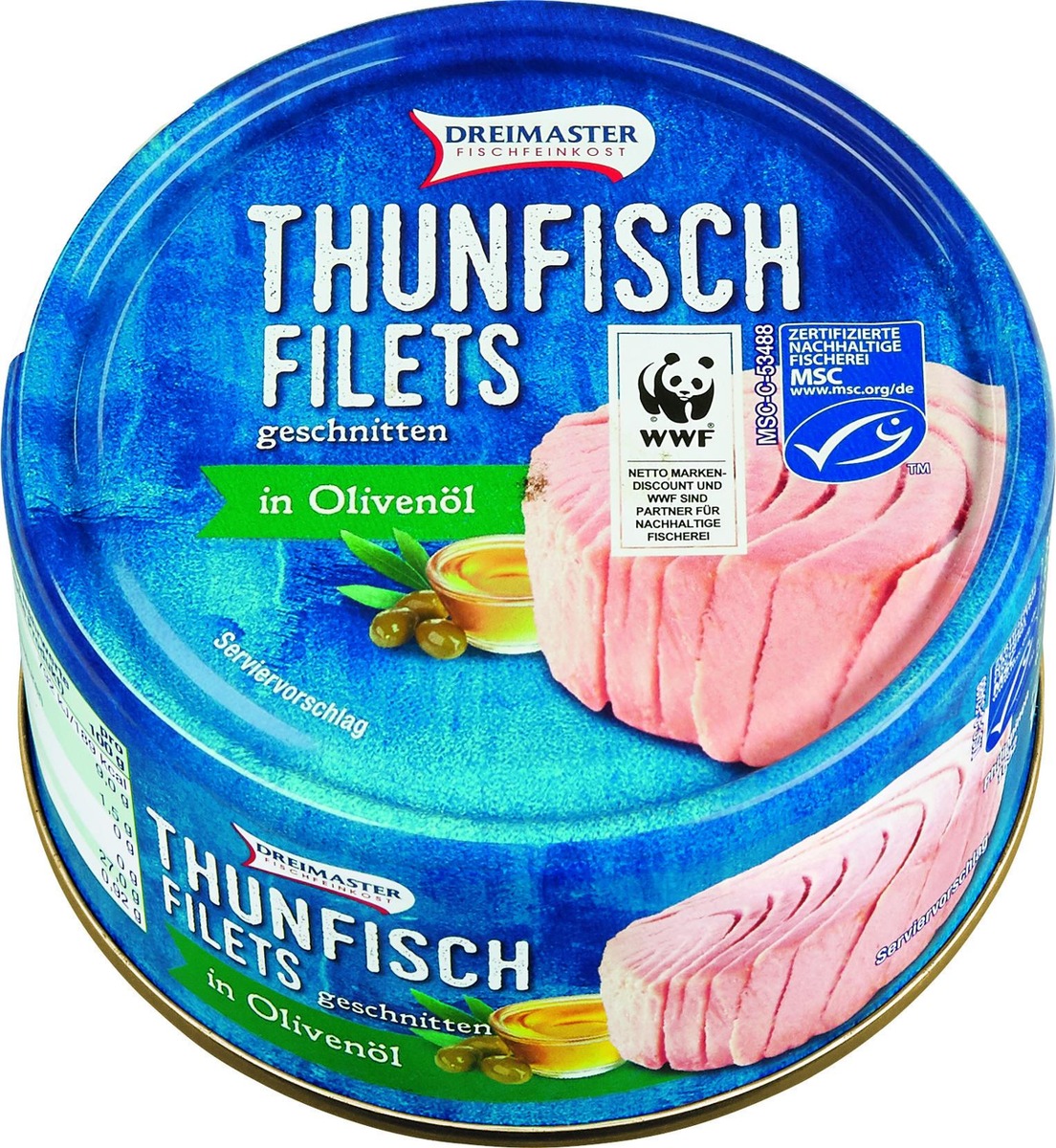 Ocenění: Tuňák vlastní značky Dreimaster společnosti Netto s pečetí MSC a logem WWF