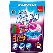 Waschkönig Color pro praní barevného a prádla. Koncentrované kapsle na praní s inovativní technologií a účinnými látkami pro různé prací fáze, zajišťují současné čištění a ochranu barev textilií. Speciální aktivní látky a enzymy odstraní i ty nejodolnější a zaschlé skvrny. Kapsle jsou vyrobeny bez fosfátů a nezatěžují tak životní prostředí. Ekonomické a snadné dávkování.Nepoužívejte pro vlnu a hedvábí.