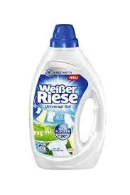 Weißer Riese univerzální gel je prací prostředek na bílé a stálobarevné prádlo, který je účinný až na 100 druhů různých skvrn. Prádlo si zachovává dlouhou životnost a ohromující prací výsledky. Účinné při všech teplotách od 20 do 95 °C. Má silný čistící účinek, takže je vhodný pro rodiny s dětmi. Má velmi příjemnou čistou vůni a dodává dlouhotrvající svěžest. Weißer Riese je jedna z nejoblíbenějších německých značek pracích prostředků. Velmi oblíbený díky své silné čistící schopnosti a krásné svěží vůni. Složení proti skvrnám technologie KRAFT. Navíc obsahuje novou formuli Flecken Detektiv, což je funkce, která odstraňuje i silně znečištěné fleky na prádle.