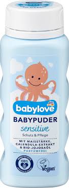 Jemný jako rodičovská láska: babylove Sensitive Powder bez mastku chrání zvláště citlivá místa dětské pokožky. Vysoce kvalitní receptura na bázi kukuřičného škrobu (bez mastku) s výtažkem z měsíčku lékařského a bio jojobovým olejem chrání citlivá místa pokožky, např. v oblasti plen i v záhybech a podpaží. Pudr absorbuje přebytečnou vlhkost a dodává pokožce suchý, příjemně jemný pocit. Receptura bez mikroplastů a ve vodě rozpustných čistě syntetických polymerů.