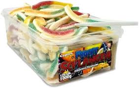 Glukózový sirup, cukr, modifikovaný kukuřičný škrob, hovězí želatina, okyselovač (kyselina citronová, kyselina jablečná, kyselina vinná), aroma, barviva (E102*, E110*, E122*, E129*, E133). *Může ovlivnit aktivitu a pozornost dětí.