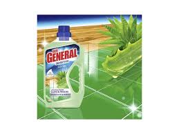 Der General s Aloe Vera je pH neutrální a chrání zároveň pokožku a citlivé povrchy. Snadno odstraňuje tu nejodolnější špínu a mastnotu. Der General je rychleschnoucí, nezanechává šmouhy a nevyžaduje stírání. Zářivý lesk po setření vlhkým hadříkem na všech typech podlah.
