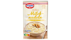 Mléčné nudle Dr. Oetker Sweet Meal s vanilkovou příchutí, vyrobené pouze z mléka, nabízejí exkluzivní změnu tempa vašich jídel. Vychutnejte si je samotné nebo se skořicí a cukrem, ovocným kompotem nebo švestkami. Nechte se překvapit a znovuobjevte nudle! Mimochodem: Tyto mléčné nudle se připravují stejně rychle a snadno jako rýžový nákyp Dr. Oetker Sweet Meal. Jednoduše přiveďte k varu 500 ml mléka, sejměte z plotny, přidejte mléčné nudle, promíchejte, nechte 10 minut odstát přikryté a jsou hotové. Žádné připálení ani vykypění! Ať už jako hlavní chod nebo svačina: Sladké nudle Dr. Oetker chutnají stejně dobře jako domácí!