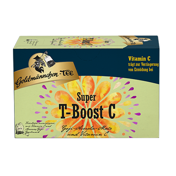 Získejte okamžiky pitné síly a chuť lahodné goji, aceroly, echinacey, guarany a maté. Vychutnejte si lahodnou chuť, která uhasí vaši žízeň s čajem T-Boost Energizer Tea od Goldmännchen. Staňte se superhrdinou s příchutí superovoce. Doplňte si T-Boost a osvěžte se! Osvěžující, ovocná chuť s goji a acerolou.