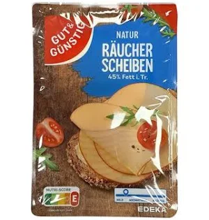 gut & günstig natur raucher scheiben - přírodní plátky zauzeného sýru 150g 45 % tukuSkladem64,00 Kč/ ks