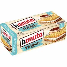 Limitovaná edice: Hanuta Tiramisu. Dvě křupavé vafle zvenku a jemný krém z mléka/mascarpone zevnitř a chuť tiramisu s kávovou notou je dokonalá.