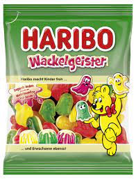 Želé HARIBO Wackelgeister - ovocné želé s vanilkovou příchutí.