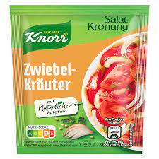 - Knorr salát korunující cibuli a bylinky je aromatický salátový dresink vyrobený z vybraných surovin, rafinovaný bylinkami z udržitelného pěstování.