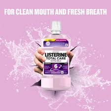 Listerine® ústní voda Total Care Extra Mild při používání dvakrát denně zlepšuje ústní hygienu. S obsahem esenciálních olejů, fluoridem a chloridem zinečnatým poskytuje celkovou ochranu pro silné zuby s 6 výhodami v 1. Účinně bojuje proti bakteriím i tam, kam se zubní kartáček nedostane: mezi zuby, na dásních a na jazyku. Omezuje zubní povlak, hlavní příčinu podráždění dásní a chrání před jeho vznikem. Listerine® má antibakteriální a klinicky prokázaný účinek.