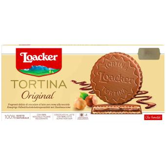 Specialita z Itálie. Loacker Tortina Original jsou vaflové dorty pro fajnšmekry. Mezi dvěma křupavými lehkými oplatkami se ukrývá lahodně aromatický oříškový krém, který je tajemstvím výtečné chuti této speciality. Křupavý požitek dokonale završí poleva z jemné čokolády. Zakousněte se do této dobroty a zažijte příjemné, křupavé sousto, které vás okouzlí.