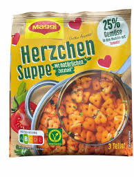 - Maggi zeleninový vývar s nudlemi ve tvaru srdce 33g na cca 3 talíře.